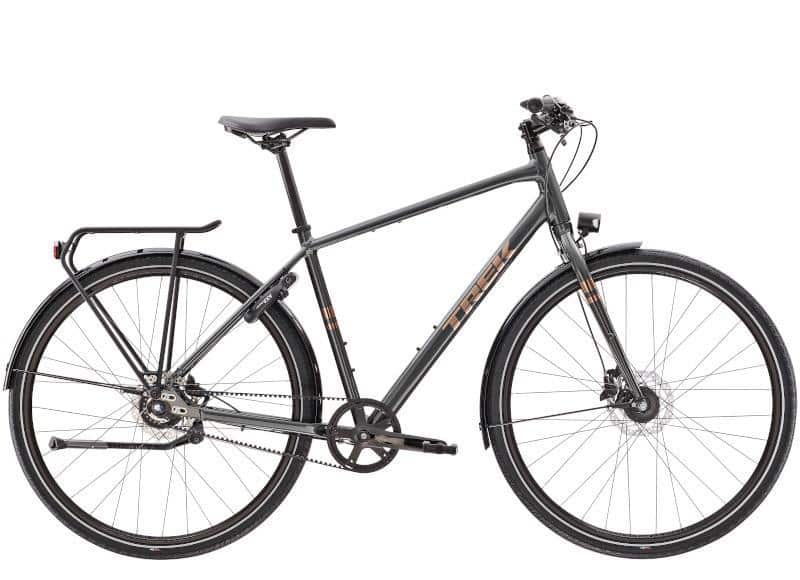 Mécaniquement, le Trek District 4 est équipé de pièces haut-de-gamme fiables et efficaces : freins à disques hydrauliques Shimano, moyeu interne Alfine, courroie de kevlar Gates Carbon Drive CDX.